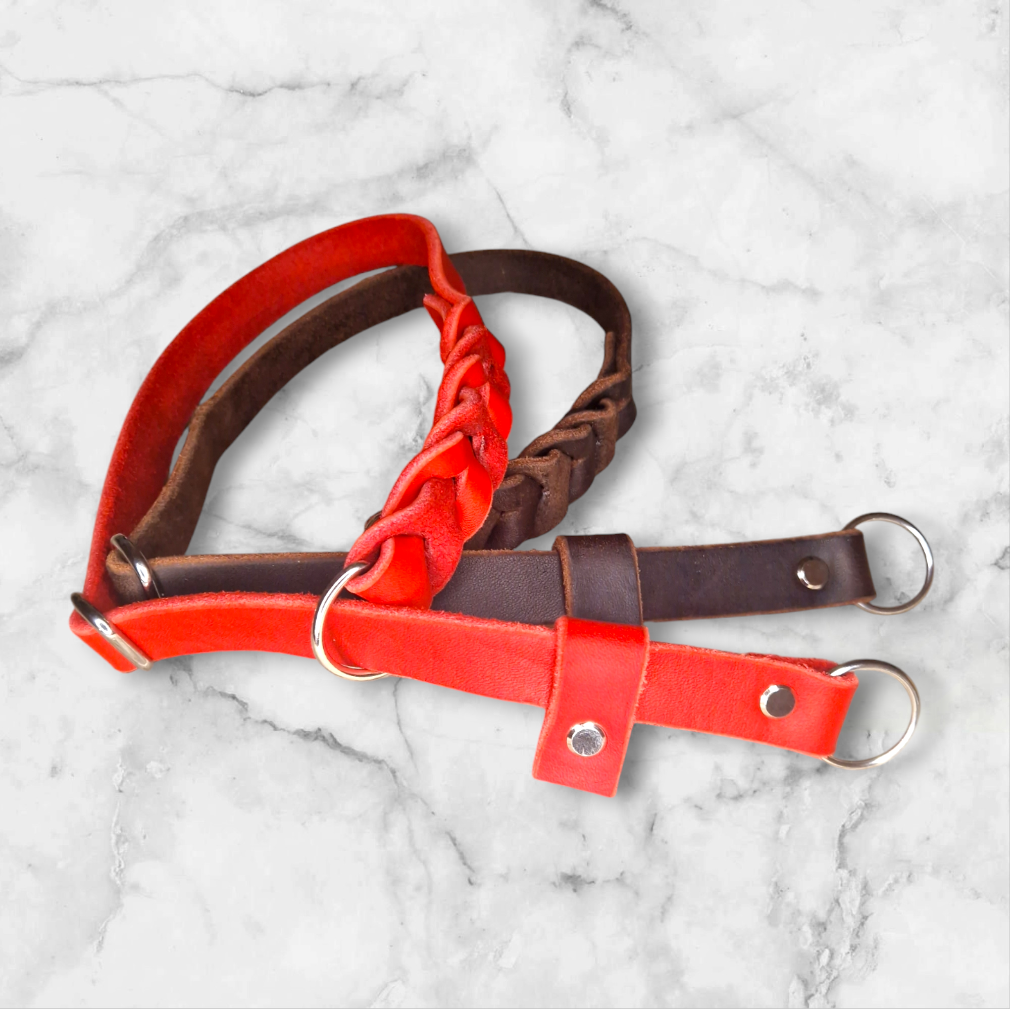 Teilweise geflochtene Leinen in den Varianten: Kurzführer, 1 m-Führleine & 3-fach verstellbare Führleine